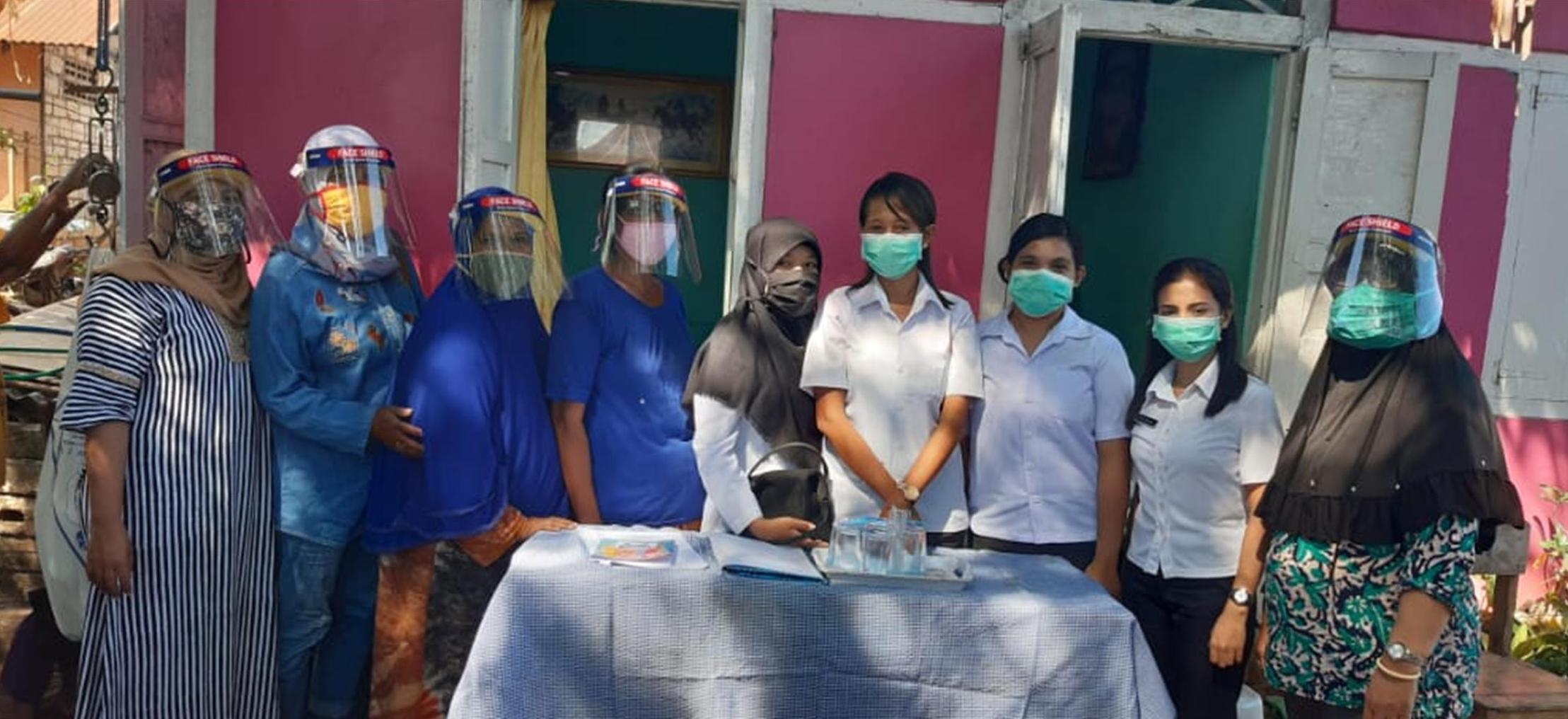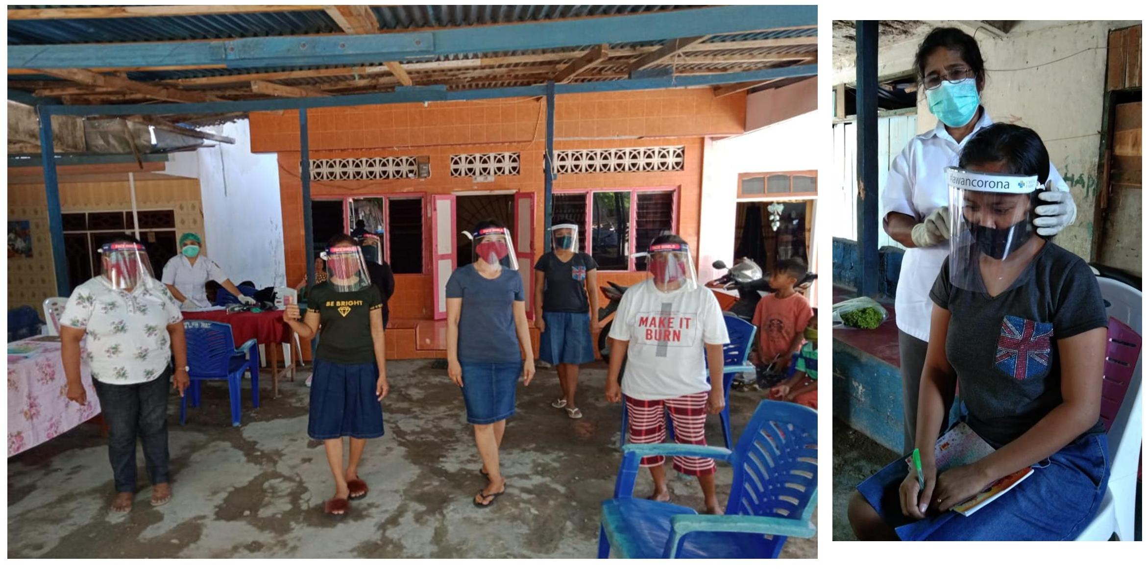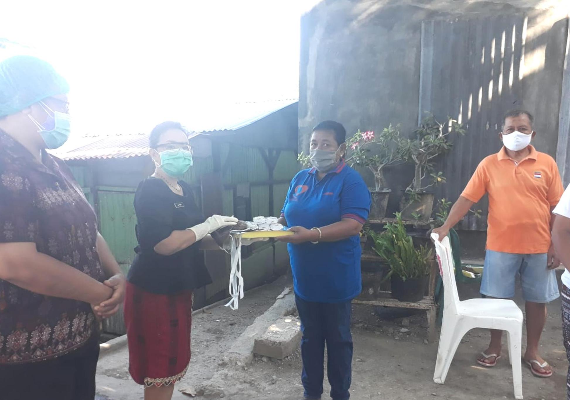 Pada salah satu Posyandu, diberikan bantuan langsung Berupa Face Shield, Masker & sabun Cuci tangan Oleh kepala Puskesmas Kupang Kota Dr Trio Hardhina.