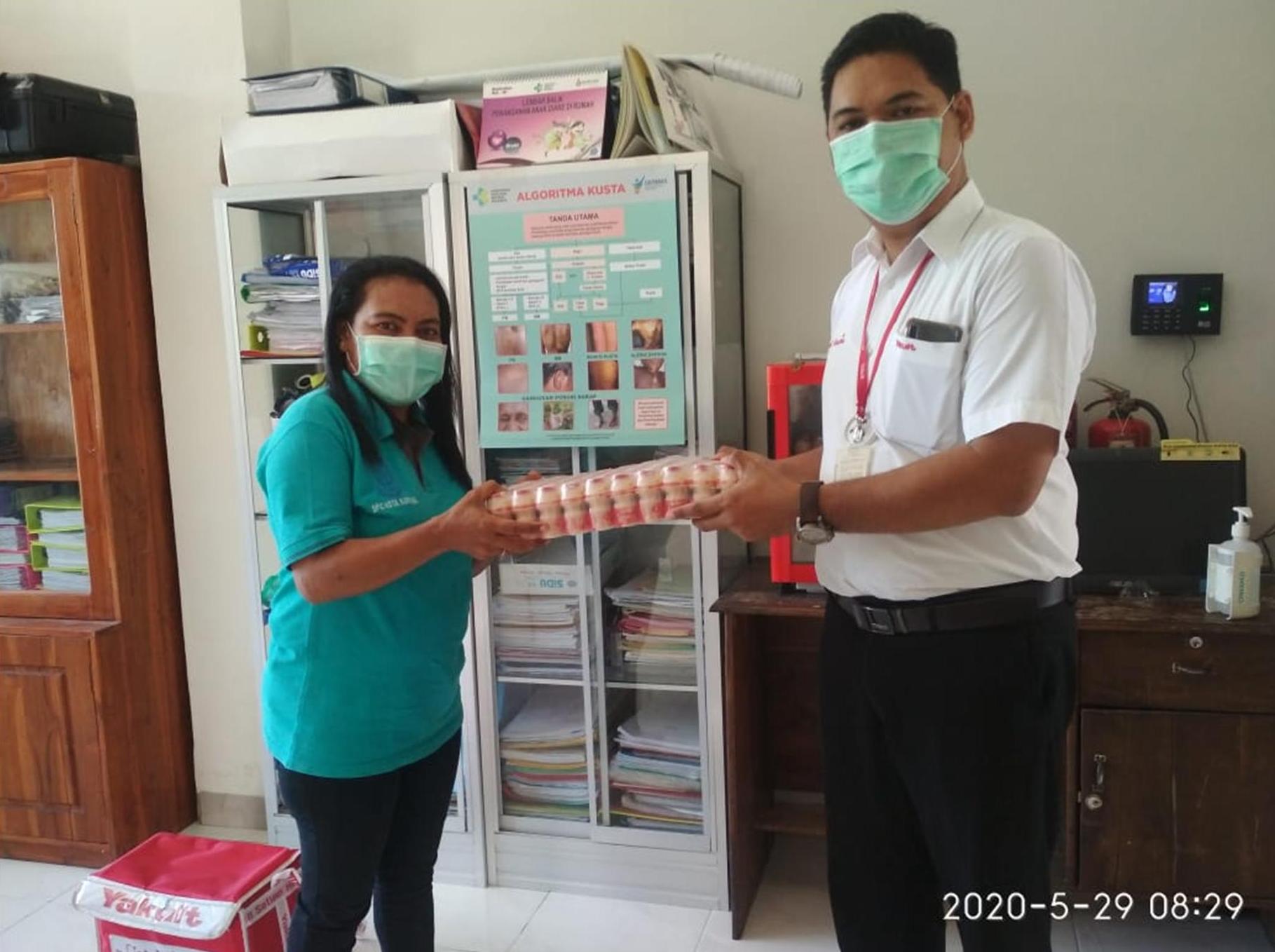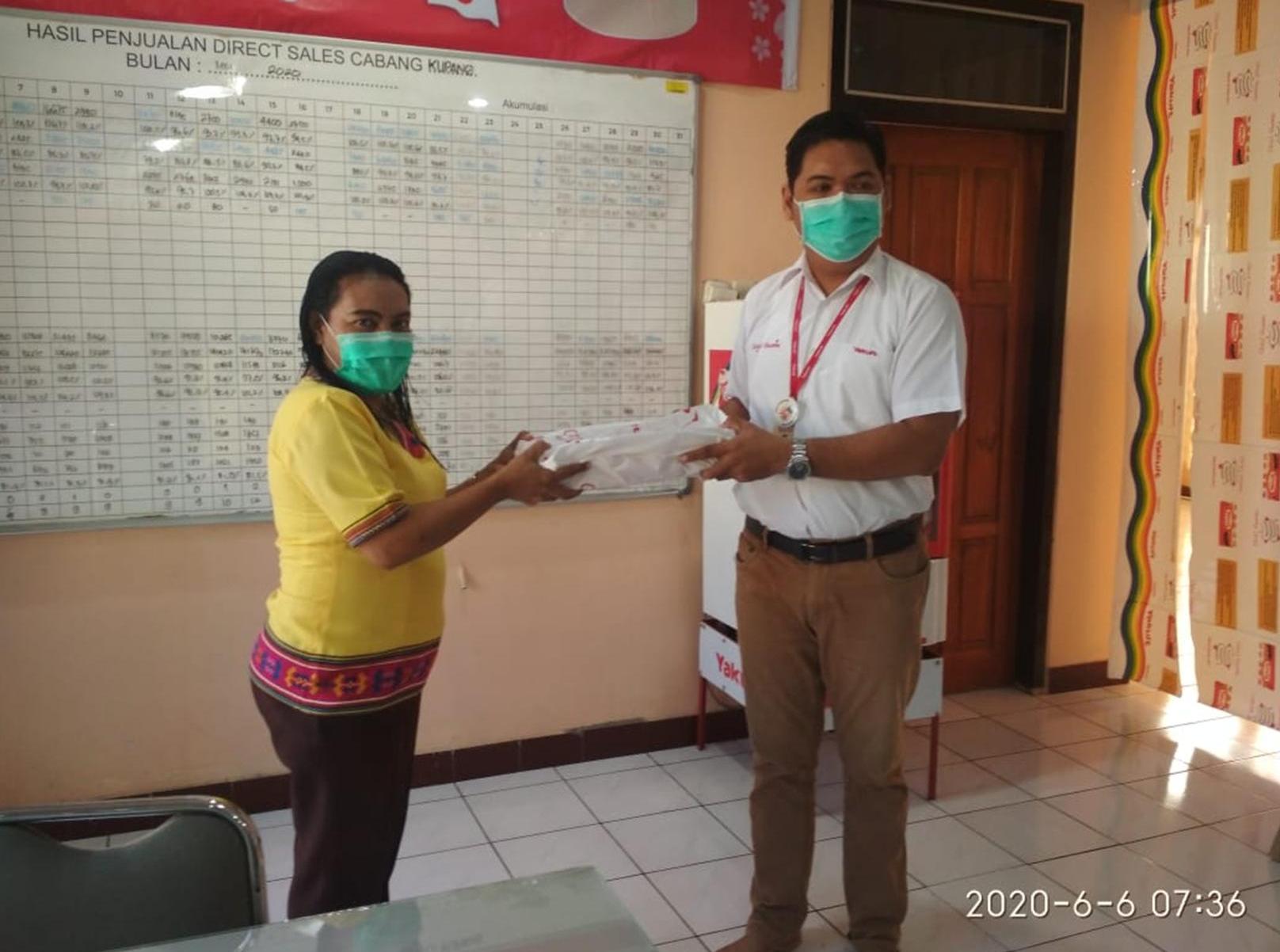 pemberian sumbangan Yakult Oleh Pak Hendra ( PT Yakult Kota Kupang) Kepada Ibu Habsibah MM Betty (Kepala Tata Usaha Puskesmas Kupang Kota)